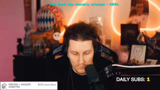 08:04:50Es wird darüber gesprochen, was im Zimmer gegen Schall unternommen werden kann, da seit dem Aufräumen der Wohnung der Schall zugenommen hat. Schaumstoffmatten an der Wand werden als Lösung genannt, aber die Person zögert, sie anzubringen. Es wird vorgeschlagen, sie mit Nägeln zu befestigen. Es wird gefragt, ob jemand ein Spiel gespielt hat, das die Person 'eingegriffen' hat. Es wird ein goldenes Skateboard gekauft, dessen Geschwindigkeit gelobt wird. Es wird über Labubus (Sammelfiguren) gesprochen und der Rat gegeben, verpackte Labubus für die Zukunft aufzubewahren. Der Begriff 'Zwambo' wird als etwas, das man immer kaufen sollte, eingeführt. Es wird über die Kosten von Labubus gesprochen und festgestellt, dass sie 35 Euro kosten. Es wird über Yeezys und seltene Shisha-Köpfe als Sammelobjekte gesprochen. Es wird erwähnt, dass es Beef mit Bodo und Hugo gab, weil sie jemanden gemobbt haben sollen. Es wird die 'geile Strecke' gelobt, auf der man aufs Land fährt und die glatt ist.