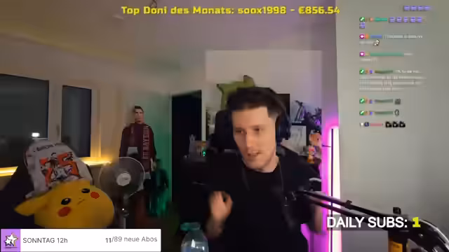 00:14:59Zu Beginn des Streams erhält der Streamer massiven Support, insbesondere von einem Zuschauer mit dem Namen Sony, der den Sub-Counter direkt zu Beginn mit 78 Subs füllt. Diese Unterstützung wird als geisteskrank und extrem gewürdigt. Aufgrund dieses Supports und des Wunsches der Community entscheidet der Streamer endgültig, den 12-Stunden-Stream durchzuführen. Parallel wird erwähnt, dass Pascal von der Community-Server-Infrastruktur daran arbeitet, einen eigenen Musik-Bot für die Domian-Podcast-Folgen zu erstellen, da die Folgen von YouTube entfernt wurden, was ein mögliches Comeback der Serie ermöglicht.