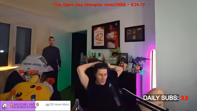 00:09:35Der Streamer begrüßt seine Zuschauer herzlich und begrüßt Namen wie Cebu, Dabodo, Anna und Serjan im Chat. Er erkundigt sich nach dem Befinden der Community und teilt positive und negative Erlebnisse seines eigenen Tages mit, wie das Genießen eines Brötchens und den Kauf von Sushi. Er thematisiert auch seine anhaltenden Nackenschmerzen, die er als sehr unangenehm und schlimm beschreibt, und erwähnt, dass Luma ihm eine Massage gegeben habe, die möglicherweise die Ursache sein könnte.