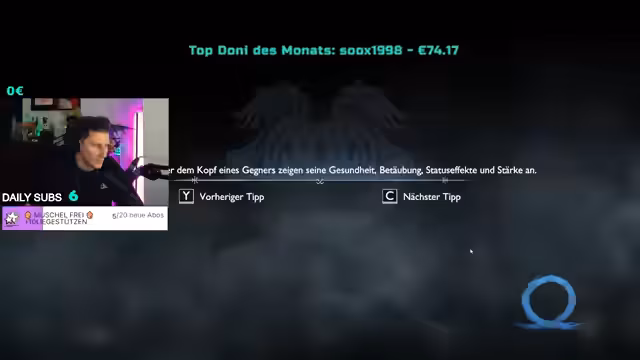 03:52:02Die Stimmung im Chat und der Spielverlauf in League of Legends werden besprochen. Darko scheint das Spiel verlassen zu haben. Der Streamer speichert den Spielstand und reflektiert über die vielen Bossfights in God of War und die folgenden Erfolge im Mobaspiel. Es wird über Spielstrategie bei Bosskämpfen gesprochen, wobei der Streamer erklärt, dass man meist mehrere Anläufe braucht, um die Mechaniken zu verstehen und dass es oft klüger ist, mit wenig Leben in den Kampf zu gehen, als zur Basis zurückzukehren, um sich zu heilen. Interaktionen im Chat wie das Aufdecken von neuen Champion-Karten und eine Diskussion über das Spiel Stronghold Crusader unterbrechen den Flow.