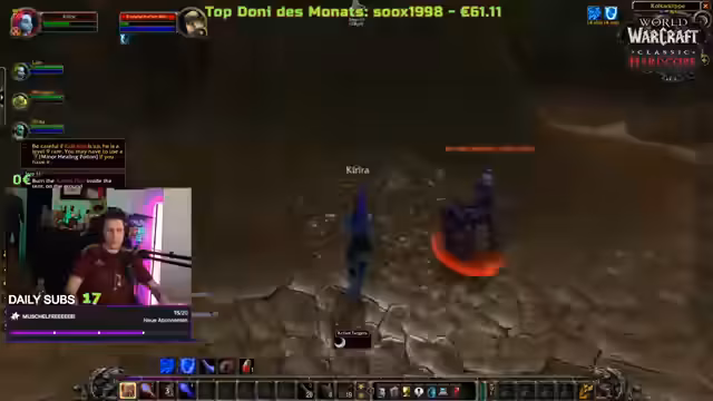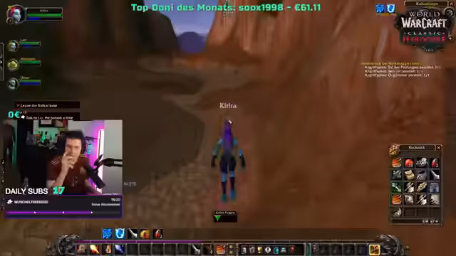 04:58:03Der Streamer diskutiert die soziale Dynamik und das Gameplay in World of Warcraft, insbesondere im sogenannten 'Repo'-Modus, bei dem Spieler nach der Ermordung ihres Charakters neu beginnen. Er vermisst dabei einen bestimmten Streamer, dessen Anwesenheit und 'Geschrei' das Erlebnis besonders lustig machen. Er gibt auch wertvolle Spielertipps, etwa dass man sich im Kampf step-by-step vorantreten sollte und Respawn-Punkte von Gegnern abwarten muss. Sein Fokus liegt auf dem gemeinschaftlichen und unterhaltsamen Aspekt des Zockens, während er auch kritisch die 'Griefing'-Taktik erwähnt, bei der erfahrene Spieler niedrigstufige Gegner anlocken, um Neulinge zu töten.