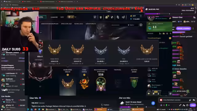 04:31:24Nach einem kurzen Technical Break startet Nilo ein League of Legends-Ranked Game. Das Team erleidet früh Rückschläge, wie einen unglücklich verlorenen early Fight und den Tod von Teammitgliedern. Nilo analysiert die Situation und versucht, die Fehler aufzuarbeiten, kritisiert aber die fehlende Synergie und die schwache Performance des Teams.