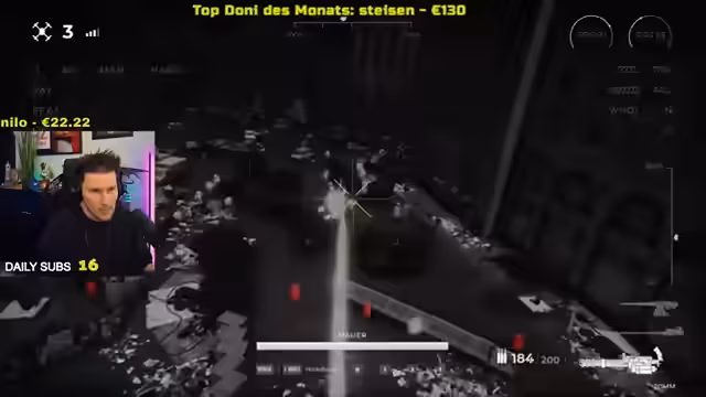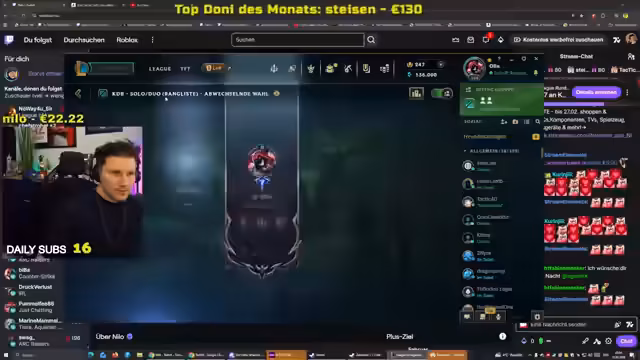 05:07:29Während des Streams treten technische Probleme auf. Ein Mitspieler namens Schaschek scheint offline gegangen zu sein, was den Streamer verwirrt. Er bittet den Chat um Information, was passiert ist. Später versucht er, eine Herausforderung zu lösen, bei der er Champions erraten muss. Die Runde verläuft holprig, da er Schwierigkeiten hat, die Audioaussagen korrekt zuzuordnen. Dies führt zu Unterbrechungen und einem Bruch im sonst engen Fokus auf das Spielgeschehen.