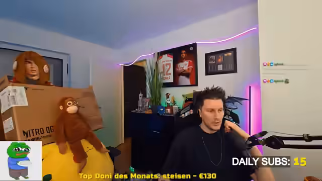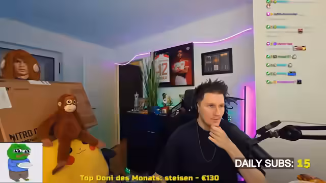 00:10:04Der Stream beginnt mit einer Begrüßung und klärt technische Angelegenheiten. Nilo erwähnt, dass er heute früher im Stream ist und kündigt an, noch einen Subway bestellen zu wollen. Die wichtigsten Nachrichten betreffen jedoch das persönliche Leben und die Technik. Zuerst teilt er mit, dass die Ergebnisse von SLAP eingetroffen sind und die eingesendeten Karten eine finanzielle Enttäuschung darstellen. Kurz darauf wird ein Problem mit seinem über 14 Jahre alten Bildschirm thematisiert, der ständig viel Zeit zum Hochfahren benötigt und somit die Stream-Qualität beeinträchtigt. Schließlich kündigt er an, dass Pascal und Luma ihm dankenswerterweise einen neuen Bildschirm besorgt und per Uber geliefert haben, was als enorme Erleichterung und Rettung für die Streams beschrieben wird.