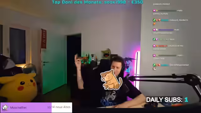 01:36:24Nach einigen intensiven Spielrunden wendet sich der Streamer neuen Aktivitäten zu. Er kündigt an, dass er ein Kletterspiel machen möchte, das er bereits in einer WhatsApp-Gruppe angedeutet hat. Diese Kooperation scheint eine Gelegenheit für unkonventionelles, spaßorientiertes Gameplay zu sein. Gleichzeitig erwähnt er auch andere Spiele, wie das 'Zeta-Spiel', und wirbt um die Teilnahme von Arty, dem es scheinbar an Motivation mangelt. Abschließend wird ein sehr großer Supporter mit einem 100-Monats-Resub erwähnt, was für eine besonders treue Community spricht.