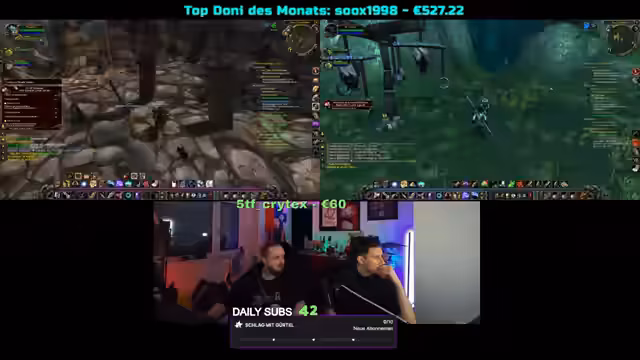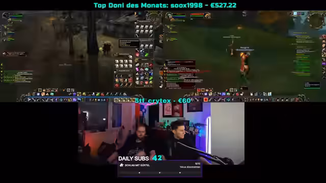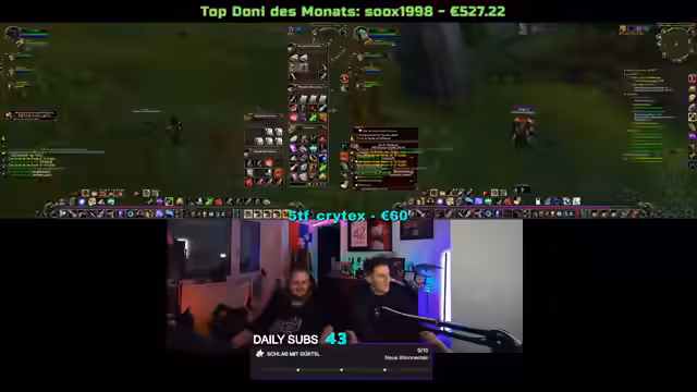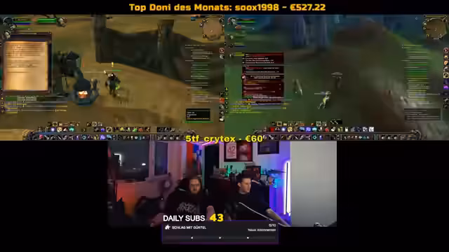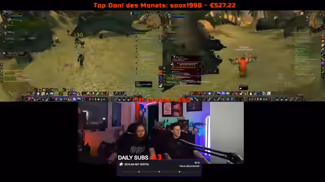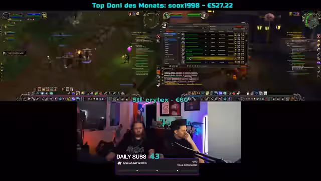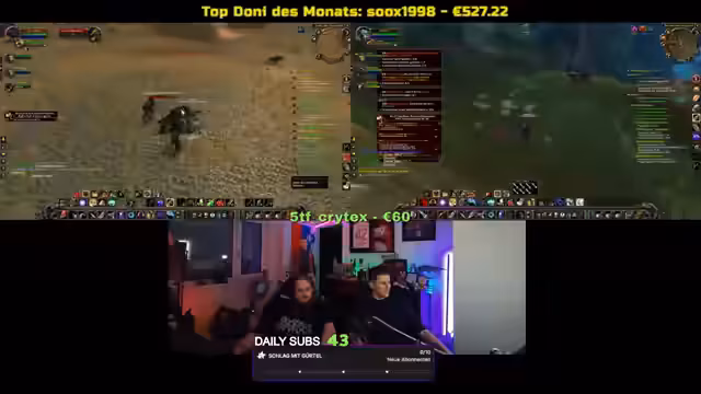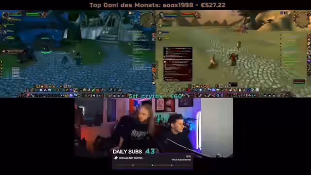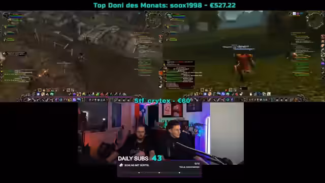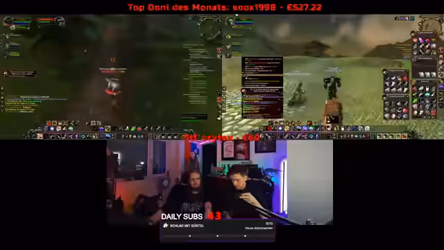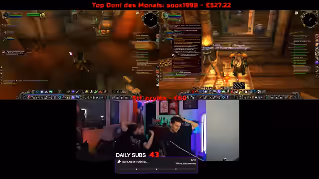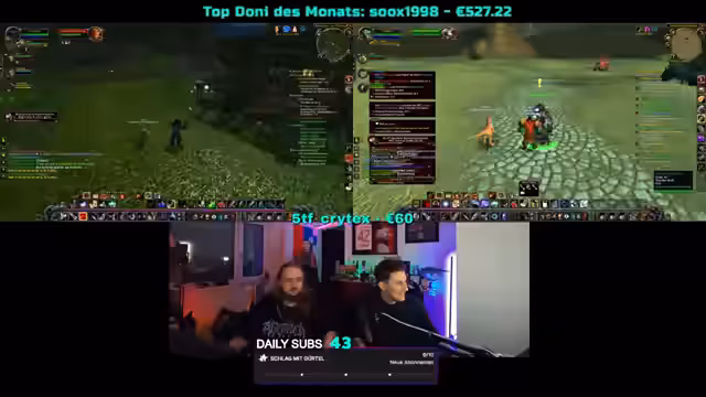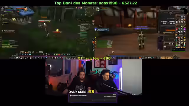 02:44:11Die Streamer tauchen tiefer in das gemeinsame World of Warcraft Classic-Erlebnis ein, wobei die Herausforderungen der Setup-Optimierung weiterhin präsent sind. Es wird diskutiert, wie die Bildschirme am besten angeordnet werden können, um das Gameplay beider Streamer gleichzeitig sichtbar zu machen. Die Notwendigkeit, Addons wie Questie und Fast Repair zu installieren, wird angesprochen, um das Spielerlebnis zu verbessern. Die Streamer tauschen sich über ihre Charaktere und Quests aus, während sie versuchen, die technischen Aspekte des Doppel-Setups zu meistern. Die Stimmung ist ausgelassen, und die Freude am gemeinsamen Gaming steht im Vordergrund, auch wenn nicht alles reibungslos verläuft. Die technische Feinabstimmung, insbesondere die Ausrichtung der Bildschirme und die Soundeinstellungen, nimmt einen Großteil der Zeit in Anspruch, um ein optimales Zuschauererlebnis zu gewährleisten. Trotz kleinerer Schwierigkeiten wird das gemeinsame Spielen als Highlight des Abends empfunden, das die Community zusammenbringt.
