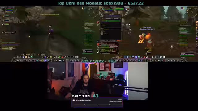 02:52:40Die Streamer stellen sich den Herausforderungen des WoW Hardcore-Modus, bei dem der Tod eines Charakters permanent ist. Sie müssen unter erschwerten Bedingungen spielen und sich auf Teamwork verlassen, um Quests zu bestehen und am Leben zu bleiben. Die Suche nach bestimmten Quest-Items, wie Berg-Löwen-Blut, erweist sich als zeitaufwendig und frustrierend, da die Drop-Raten niedrig sind. Die Streamer teilen ihre Erfahrungen und Strategien, während sie versuchen, die Quests im Silberwald zu meistern. Die Kommunikation im Chat ist wichtig, um Probleme wie Lags oder Soundprobleme zu identifizieren und zu beheben. Die gemeinsame Anstrengung und der humorvolle Umgang mit Rückschlägen prägen diese Phase des Streams. Die Schwierigkeiten des Hardcore-Modus werden offen angesprochen, und die Streamer motivieren sich gegenseitig, weiterzumachen und die Herausforderungen gemeinsam zu meistern. Der Zusammenhalt der Community wird durch die gemeinsamen Erlebnisse im Spiel gestärkt.