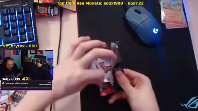 01:03:37Nachdem ein Zuschauer 60 Euro spendet, um die Glurak-Edition-Box zu öffnen, beschließt Nilo, diese im Stream zu enthüllen. Er verspricht, die Box vorsichtig zu öffnen, um sie nicht zu beschädigen, und betont, dass alle gezogenen Karten dem Spender gehören. Die Box enthält eine beeindruckende Glurak-Figur, die auch als Kartenhalter dient, sowie eine Promo-Karte und zehn Booster-Packs. Nilo zeigt die Figur begeistert und lobt ihr Design. Die Spannung steigt, als die Booster-Packs geöffnet werden. Trotz der Erwartungen auf weitere seltene Karten, bleibt das Glück aus. Nilo zieht keine der begehrten Full-Art- oder 'Chase'-Karten. Er scherzt über sein mangelndes Glück und die Tatsache, dass Darko bisher die besseren Karten gezogen hat. Am Ende des Openings zieht Nilo eine Trainer-Karte, die zwar nicht zu den absoluten Top-Hits gehört, aber immerhin eine seltene Karte ist. Die Streamer fassen zusammen, dass sie aus dem Booster-Bundle und der ETB einige Hits gezogen haben, insbesondere die Rotom-Karte, aber das goldene Glurak blieb unerreichbar. Trotzdem hatten sie Spaß beim Öffnen der Packs und bedanken sich bei den Zuschauern für ihre Unterstützung und die Spenden, die das Öffnen der Glurak-Box ermöglichten.