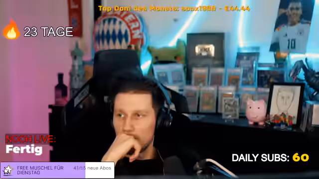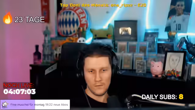 06:24:13Es wird betont, dass der Schlüssel zum Erfolg im Leben darin liegt, am Ball zu bleiben und sein Ding zu machen. Streaming kann mit enormem Druck verbunden sein, da das Einkommen unregelmäßig ist. Es wird von einer Zeit berichtet, in der der Streamer kurz vor dem Aufgeben war, aber dann eine positive Wendung erfuhr. Die Bedeutung von Durchhaltevermögen und dem Glauben an sich selbst wird hervorgehoben. Es wird die Wichtigkeit betont, sich auf das eigene Glück zu konzentrieren und einen positiven Weg zu gehen. Es wird die Dankbarkeit für die Unterstützung der Community und die positiven Beziehungen zu anderen Streamern betont. Es wird die Bedeutung von langfristigem Aufbau und Investition in die eigene Entwicklung hervorgehoben, anstatt kurzfristige Erfolge zu suchen. Es wird die Freude darüber ausgedrückt, eine tolle Community zu haben und dass die Dinge gerade gut laufen. Die vergangenen neun Jahre im Fulltime-Streaming werden reflektiert, einschließlich der Herausforderungen und Erfolge.