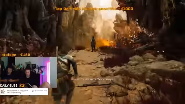 04:27:34Der Gameplay-Fokus liegt auf dem Sammeln von Ressourcen wie Wurzeln, um das Inventar zu verbessern. Die Interaktion mit dem Sohn, Atreus, steht im Vordergrund, bei der Kratos ihm überleben lehrt. Der Streamer äußert Verwirrung über die Handlung, insbesondere über eine Prophezeiung und das Schicksal der Charaktere. Gleichzeitig hat er technische Schwierigkeiten mit dem PC und den Streaming-Tools, was den Ablauf stört.