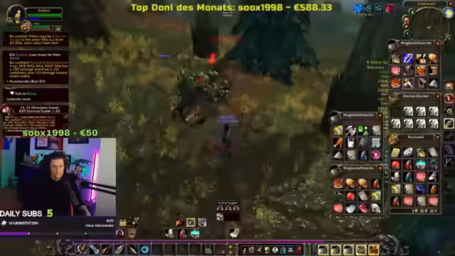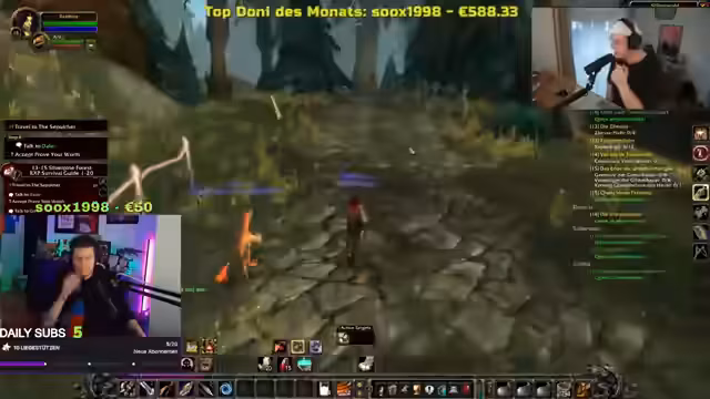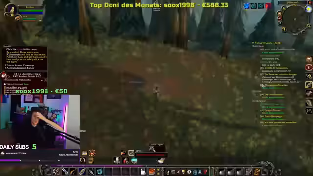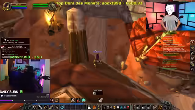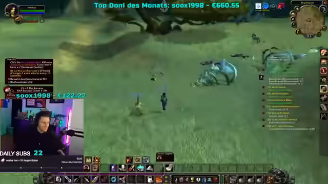 04:18:39Der Streamer berichtet von seinen aktuellen Herausforderungen in WoW Hardcore, nachdem sein Level-30-Charakter auf Stream gestorben ist. Er versucht nun, mit einem neuen Charakter wieder aufzuholen und konzentriert sich auf das Grinden von Spinnen, um schnell Level aufzusteigen. Er erwähnt, dass er in einem gefährlichen Gebiet unterwegs ist, in dem ein Elite-Worgen patrouilliert, der ihn bei Kontakt sofort töten könnte. Er liebt das Gefühl, durch Grinding Level-Ups zu bekommen, da es sich wie ein 'extra Zusatz' anfühlt, der ihn stärker macht und seinem Ziel näherbringt. Trotz der Risiken und des Verlusts seines vorherigen Charakters bleibt er motiviert, weiterzuspielen und Fortschritte zu erzielen.
