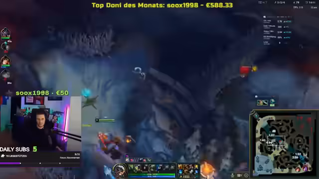 13:09:41Es wird festgestellt, dass das Spiel aufgrund einer falschen Minecraft-Einstellung zu Lags führte, was von niemandem bemerkt wurde. Die Spieler analysieren die aktuelle League of Legends-Partie, die sich als schwierig erweist. Es wird die mangelnde Hilfe auf der Top-Lane und die schlechte Leistung eines ADC-Spielers kritisiert, der kaum Schaden verursacht. Trotz der Schwierigkeiten und des hohen CC des Gegners versuchen die Spieler, Baron zu starten, um das Spiel zu wenden. Die Müdigkeit des Spielers beeinträchtigt weiterhin seine Konzentration, und es wird über eine kurze Pause nachgedacht, um sich zu erholen.