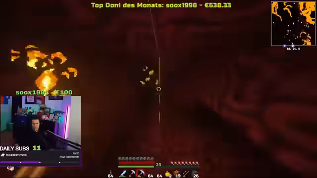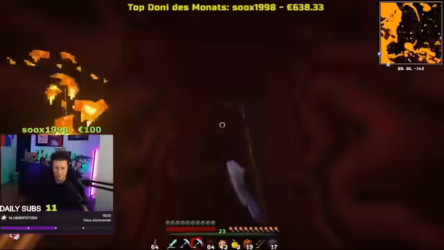 11:00:19Im Haus des Streamers bricht Chaos aus, als Spieler sich gegenseitig umbringen und Fackeln abbauen. Es wird festgestellt, dass ein Wassereimer benutzt wurde, der das gesamte Haus überflutet und für Verwirrung sorgt. Der Streamer äußert seinen Unmut über die Zerstörung und fragt sich, wer für dieses Chaos verantwortlich ist. Es wird spekuliert, ob 'Curse of Binding' auf die Netherite-Sachen gelegt werden soll, um zu verhindern, dass diese nach dem Tod verloren gehen. Die Situation eskaliert weiter, als ein Spieler, der aussieht wie eine DIA-Rüstung, Schaden nimmt, aber kaum Lebenspunkte verliert, was auf eine sehr starke Rüstung hindeutet. Die Schuld für die Angriffe wird hin- und hergeschoben, wobei der Streamer seinen Bruder verdächtigt, während dieser die Schuld abstreitet und auf einen anderen Spieler verweist.