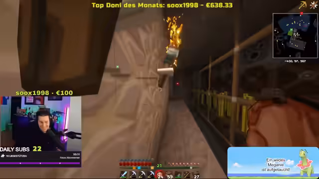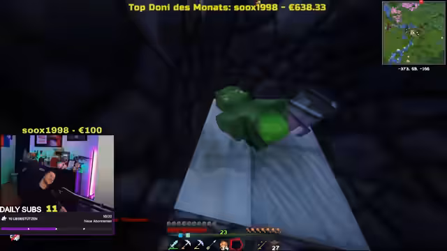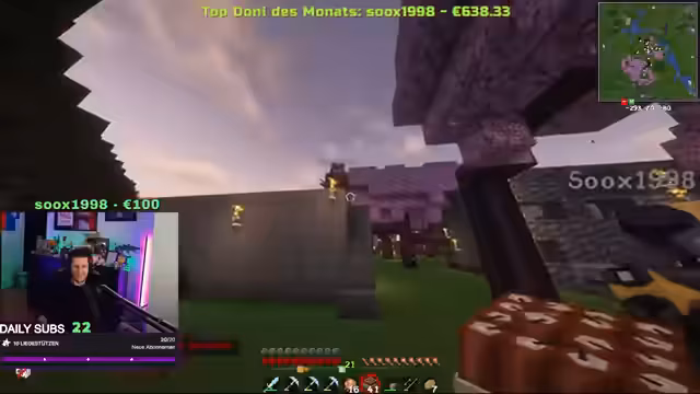 11:27:48Die Situation im Spiel spitzt sich zu, als David droht, die Basis des Streamers in die Luft zu sprengen, nachdem er sich nicht von den Angriffen der anderen Spieler beschützt gefühlt hat. Der Streamer reagiert empört und droht im Gegenzug, Davids gesamten Besitz mit Endcrystals zu zerstören, falls dieser seine Drohung wahr macht. Es wird deutlich, dass eine feindselige Stimmung herrscht und niemand dem anderen traut. David platziert tatsächlich TNT, was der Streamer entdeckt und als Verrat ansieht. Die Spieler diskutieren über die Konsequenzen dieser Handlungen und die Möglichkeit, dass unschuldige Spieler als Kollateralschäden betroffen sein könnten. Die Drohungen werden ernst genommen und es wird befürchtet, dass es zu einer größeren Eskalation kommen könnte.