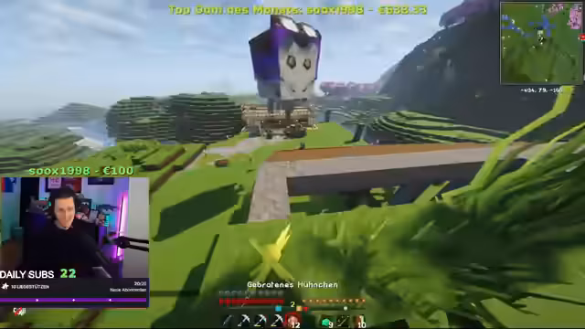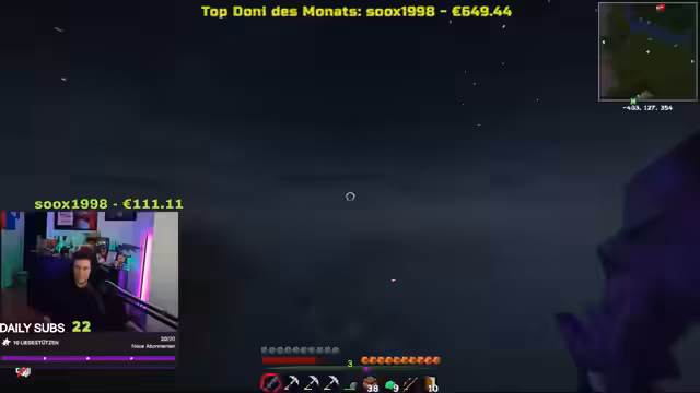 10:00:03Nach der Diskussion über die sozialen Probleme beginnt eine Minecraft-Session. Luma, ein anderer Spieler, ist ebenfalls online und hat bereits XP gefarmt. Es wird entschieden, in Minecraft weiterzuspielen. Die Spieler planen, ein riesiges Nether-Portal zu bauen. Es wird über die Schwierigkeiten des Baus gesprochen, insbesondere den Mangel an Cobblestone und Dripstones. Nilo, der Streamer, äußert sich müde und überlegt, einzuschlafen, wird aber von den anderen Spielern ermutigt, weiterzumachen. Es wird auch über die Möglichkeit gesprochen, weitere Spieler auf den Server einzuladen und wie man am besten Netherite farmt.