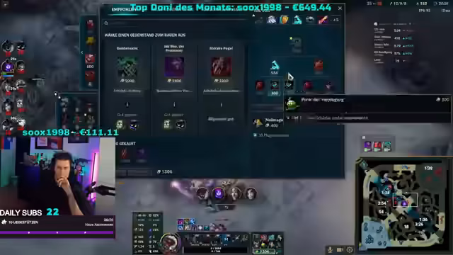 16:36:08Der Streamer reflektiert über die Herausforderungen eines 18-stündigen Streams, insbesondere in Kombination mit wenig Schlaf und einer ungewohnten Startzeit. Er gibt zu, dass er sich überschätzt hat, aber stolz ist, es durchzuhalten. Die Kombination aus Schlafentzug und langer Streamzeit wird als „toxisches Gemisch“ beschrieben, das ihn stark mitnimmt. Er erwähnt, dass er von Anfang an wusste, dass es anstrengend werden würde, besonders als der Spenden-Pot voll wurde. Im Kontext eines League of Legends-Spiels beschreibt er die Schwierigkeiten, als Supporter im Solo-Queue zu spielen, da man oft mit unerfahrenen oder unkooperativen Teammitgliedern konfrontiert ist. Er teilt eine Anekdote, wie er seine Miss Fortune-ADC dazu brachte, ihm zu vertrauen und zu folgen, was letztendlich zum Erfolg führte. Er betont die Wichtigkeit von Vertrauen zwischen ADC und Supporter, um das Spiel zu gewinnen. Trotz des Sieges ist er enttäuscht, nur zwei Ehrungen von vier zufälligen Mitspielern erhalten zu haben, was auf mangelnde Anerkennung hindeutet.