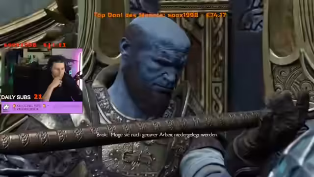 00:21:51Der Fokus des Streams verlagert sich stark auf das Spiel God of War. Der Streamer spielt den Teil Ragnarok und diskutiert ausführlich verschiedene Set-Boni für die Ausrüstung von Kratos. Es geht um Schadenstypen wie Brand und Betäubung, welche je nach Glück erhöht werden. Der Streamer experimentiert mit verschiedenen Kombinationen von grünen und violetten Gegenständen, um die optimalen Set-Boni zu erzielen, und gibt auch allgemeine Spielertipps für das Action-Adventure.