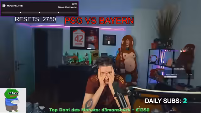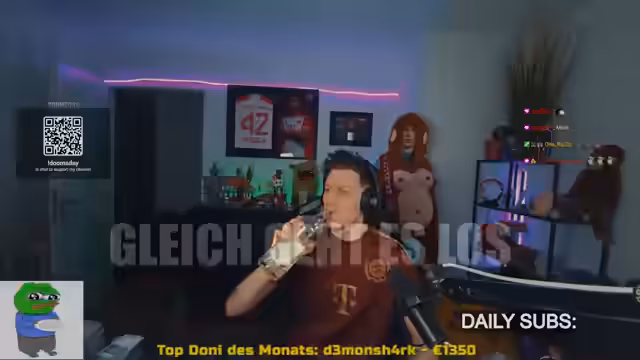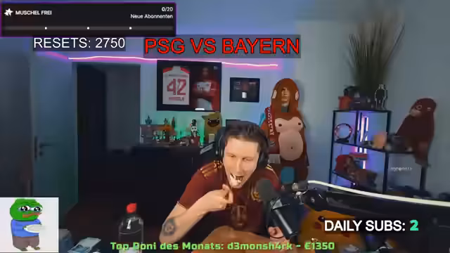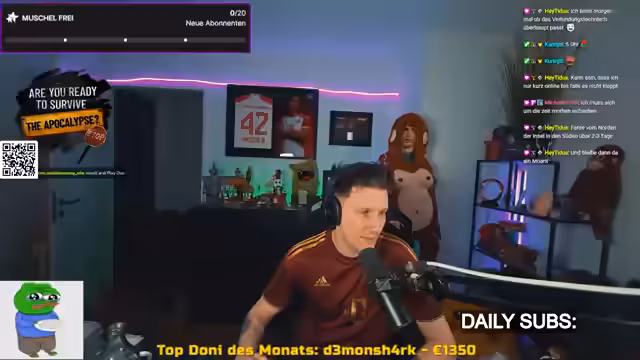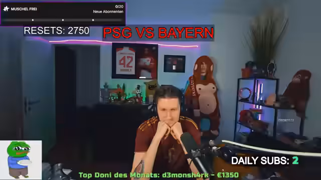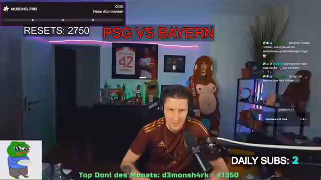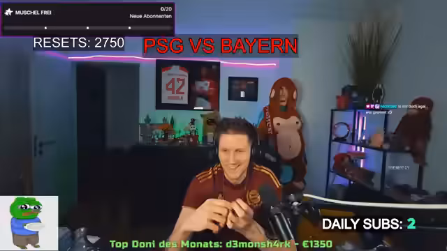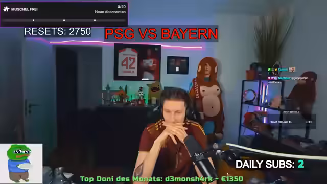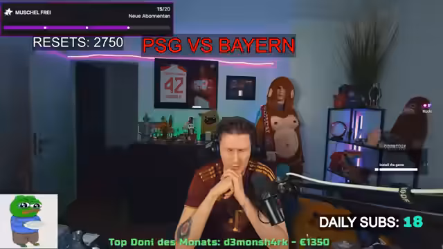 00:10:40Der Streamer begrüßt seine Zuschauer herzlich zum Stream und gibt das diesmalige Motto 'JEDER GEGNER WIRD HEILENDoomsday' bekannt. Er hofft, dass seinen Zuschauern gutgeht und erwähnt einige Chatternamen. Das Motto bezieht sich auf alle möglichen Spiele, ob Scrims im Desert, TFT, League of Legends oder auch das Fußballspiel Bayern gegen PSG, wobei jeder Gegner heute besiegt werden soll.