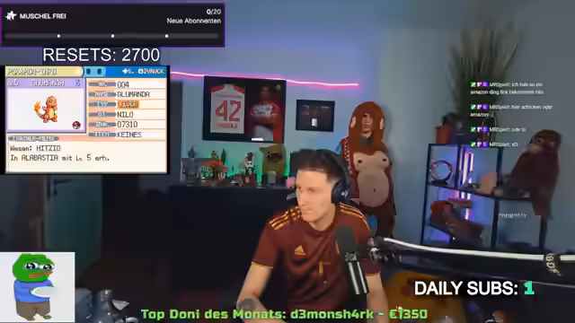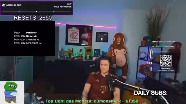 01:15:40Der Streamer ist auf der Suche nach einem glänzenden Pokémon und hat bereits über 26 Stunden investiert. Die durchschnittliche Anzahl der Versuche liegt bei 8200. Es wird über ein glänzendes Starter-Pokémon gesprochen, das bei 7000 Versuchen gefunden wurde. Die Zuschauer werden aufgerufen, bei der Glitzerjagd mitzumachen und es wurde über mögliche Verlosungen gesprochen. Es gibt auch Diskussionen über die Veröffentlichung eines neuen Pokémon-Spiels in 2D-Grafik.