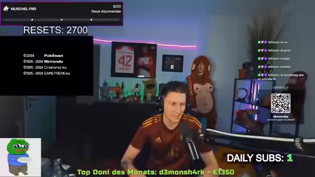 01:14:12Der Streamer plant einen Roller-Stream auf seiner Reise, wahrscheinlich um 5 Uhr deutscher Zeit. Er lädt die Zuschauer ein, ihm bei seinen täglichen Fahrten zuzusehen, wenn sie morgens auf sind. Zudem plant er ein Pokémon-Spiel, Doomsday, später am Abend und bittet um Unterstützung. Er erwähnt ein Projekt mit 2056 Resets, um ein glänzendes Glumanda zu jagen und gibt Updates zum Spielstand. Es sollen Resets im TeamSpeak gemacht werden.