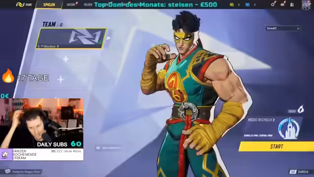 Stream-Start und Ankündigung zum letzten Tag der Streak