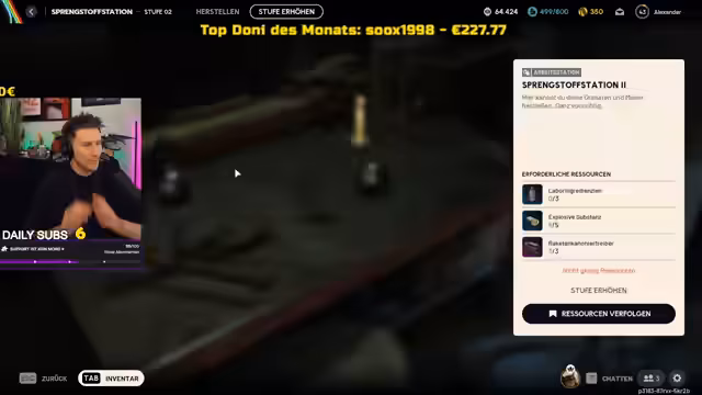 00:48:27Nach den Nachrichten-Themen wechselt der Streamer zum Gameplay des Shooters Arc Raiders. Er bewirbt das Spiel lobt seinen Preis und die Spielmechaniken, insbesondere den In-Game-Voice-Chat. Während des Streams interagiert er intensiv mit dem Chat, begrüßt viele Zuschauer by Name und spricht über verschiedene Themen wie Tausendfüßler, seine eigene Jogginghose und mögliche Skandale, um Aufmerksamkeit zu erzeugen. Das Gameplay ist von Hektik und gelegentlichen Verfolgungsjagden geprägt.
