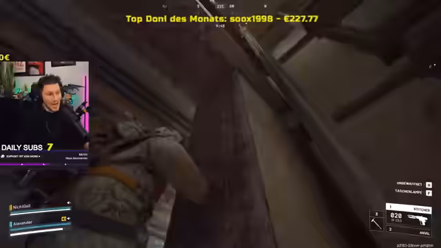 02:20:22Am Ende des Streams geht es etwas ruhiger zu. Der Streamer meint, 'Hier sieht ruhiger aus. Ruhiger, ruhiger. Endlich.' Er beschreibt auch, wie er 'Sucher' anvisiert und trifft. Der Streamer erwähnt auch eine Erinnerung an einen 'Erntner', den er in einer anderen Runde hatte. Es geht um eine Fahrt an einen Ausstiegspunkt.