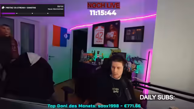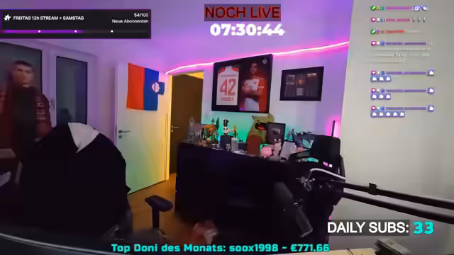 07:15:28Der Streamer kündigt an, dass der Stream nicht nur am Freitag, sondern auch den gesamten Samstag und Sonntag fortgesetzt wird, was auf große Begeisterung in der Community stößt. Er erwähnt die beeindruckende Anzahl von 1417 Abonnements in diesem Monat, was er als „krank“ und „brutal viel“ bezeichnet. Diese Zahlen zeigen den enormen Support der Zuschauer, der den Streamer sichtlich überwältigt. Er bedankt sich ausdrücklich bei den zahlreichen Sub-Geschenken, die die Verlängerung des Streams ermöglicht haben und betont, wie sehr er die Unterstützung der Community schätzt. Die spontane Verlängerung des Streams ist ein direktes Resultat der hohen Interaktion und des Engagements der Zuschauer, was den Streamer immer wieder aufs Neue überrascht und dankbar macht. Er reflektiert über die vergangenen Wochen, die privat und emotional sehr durchwachsen waren, aber durch die Unterstützung der Community in eine positive Richtung gelenkt wurden.