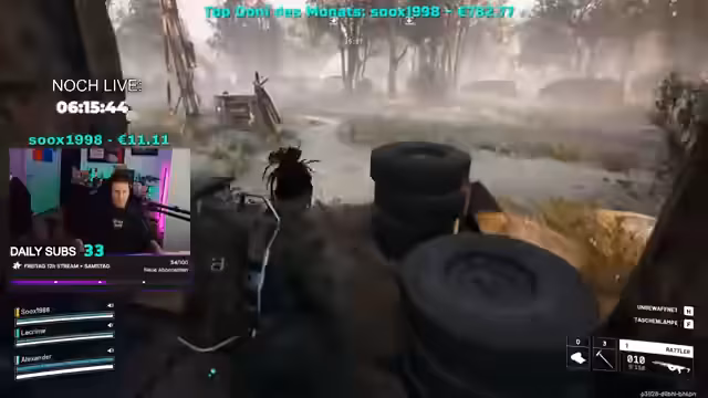 05:40:49Der Stream beginnt mit einer Frage nach dem Fähigkeitsbaum im Spiel, der sich oben im Raider-Menü befindet. Streamer entscheidet sich, einen Lowdown zu machen und startet eine Quest, bei der es darum geht, Scherben aufzusammeln. Währenddessen gibt es eine Spende von 11 Euro und 11 Cent, die vom Streamer kommentiert wird. Es folgen humorvolle Bemerkungen über andere Namen im Chat und die Frage nach der Führung in der Spielersuche.