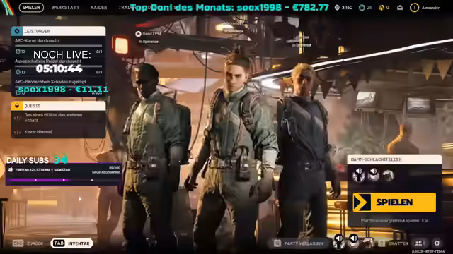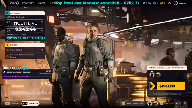 06:01:14Nachdem ein Spieler erfolgreich eine Extraktion durchgeführt hat, wird die Freude über das Überleben und das Sichern des Loots geteilt. Das Spiel ARC Raiders wird erneut als 'krasser Shooter' mit einer großen Community und einem hohen Hype beschrieben, insbesondere wegen seines In-Game-Voice-Chats, der zu lustigen, aber auch intensiven Interaktionen führen kann. Die Spieler sind bereit für neue Quests, wie das Zerstören von ARC-Gegnern, und planen, weiterhin mit 'Gratis Loadouts' zu spielen, um das Risiko zu minimieren. Es wird ein Battle-Pass-System erwähnt, das es ermöglicht, kosmetische Gegenstände und Währungen zu verdienen. Die Spieler sind gespannt auf weitere Erfahrungen im Spiel und vergleichen es positiv mit anderen Extraction Shootern wie Delta Force, wobei ARC Raiders sie mehr anspricht.