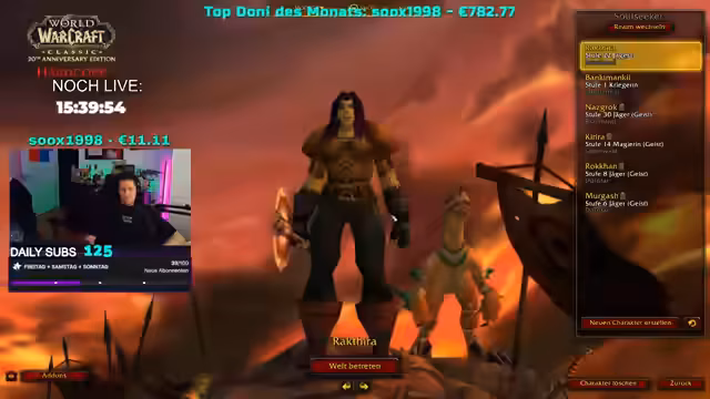 08:05:27Der Streamer startet einen Nila Slot Stream und beschreibt es als ein Casino-Roguelike-Game, bei dem bei 7 oder mehr Musterausgaben der Gewinn verdoppelt wird. Er berichtet über seine Glücksspielerfahrungen, erwähnt Multiplikatoren und gute Perks, die erhalten wurden. Dabei zeigt er sowohl große Aufregung über Gewinne als auch Frustration über Verluste. Nach einer Runde mit erheblichem Verlust beschließt er, in World of Warcraft (WoW) überzugehen. Er fragt die Community, ob sie mitmachen möchten, und schlägt vor, mit Hardpop Charakteren zu beginnen.