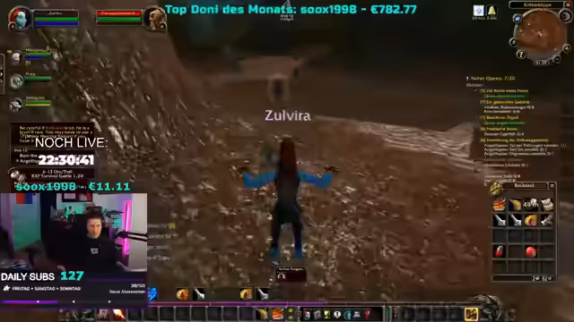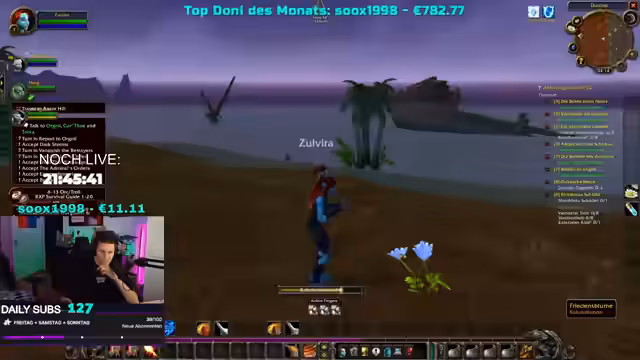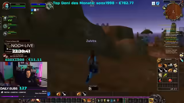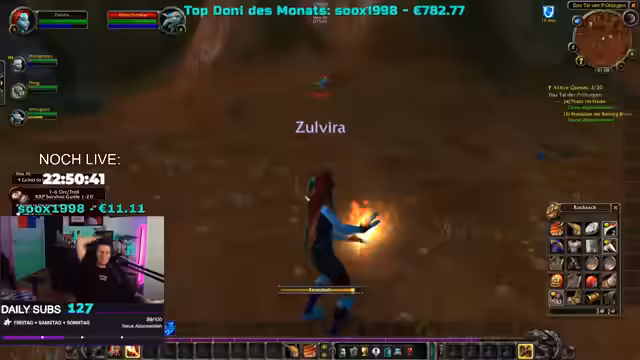 08:42:20In World of Warcraft diskutiert der Streamer mit seiner Gruppe über die Rollenverteilung und stellt fest, dass sie mit zwei Schadenscharakteren ohne Heiler unterwegs sind. Er überlegt, ob er nicht lieber einen Priester spielen sollte, um die Gruppe zu unterstützen. Gleichzeitig entscheiden sie, die Anfangsquests zu überspringen, da sie als trio ohnehin schneller vorankommen als normal. Der Streamer zeigt sich entspannt bei der Questauswahl und ist offen für verschiedene Vorgehensweisen. Er interagiert weiterhin mit der Community und beantwortet Fragen zu seinen Charakteren und Spielstil.