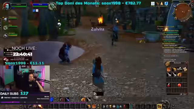 09:44:04Der Streamer spielt World of Warcraft und spricht über verschiedene Charaktere und Aktionen im Spiel. Er zeigt ein Bild und erklärt die Details eines Stuhls und eines Körpers. Es geht darum, dass seine Figur stirbt und er zusieht. Auch Diskussionen über Emote-Funktionen und Spielmechaniken finden statt. Er erwähnt, dass Twitch die 1000-Subbombe wieder entfernt hat und darüber spekuliert, warum das passiert sein könnte.