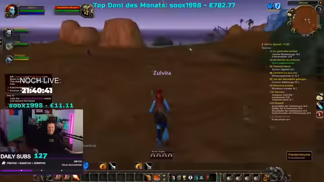10:00:20Es sind viele neue Zuschauer dazugekommen und alte Reaktiviert, auch durch RLC Raiders, was als mega geil empfunden wird. Der Streamer möchte Arc Raiders öfter spielen, besonders wenn es positive Resonanz und Stimmungen hervorruft. Es wird überlegt, wie man die Schlangen-POV von Rick und Morty in das Spiel integrieren könnte, möglicherweise mit einem "Schlangen-Jazz". Die Diskussion dreht sich auch um die Notwendigkeit von Beuteln im Spiel und die Kosten für Magiestofftaschen, wobei 20 Gold dafür ausgegeben werden. Es wird scherzhaft gedroht, dass bei unvorsichtigem Umgang mit den Gegenständen Konsequenzen drohen. Der Streamer lernt Schmiedekunst, während Darko sich um andere Aufgaben kümmert. Es wird auch über Lederverarbeitung gesprochen, wofür man nach Orgrimmar müsste. Die Spieler sammeln Beutel und tauschen Gegenstände aus, wobei der Streamer bereits 20 Gold für Beutel ausgegeben hat, was für einen Low-Level-Charakter als Luxus empfunden wird.