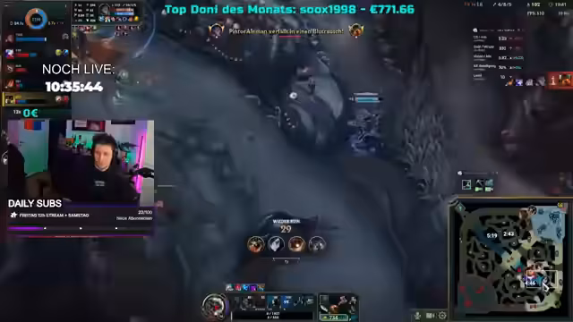 01:00:10Der Streamer drückt seine Frustration über seine Leistung in League of Legends aus, wo er trotz vieler Mastery Points in Bronze feststeckt, was er auf seine Rolle als Support und sein eigenes schlechtes Spiel zurückführt. Er spricht über seine Schlafprobleme und das Gefühl, depressiv zu werden, wenn er bei Tageslicht schläft und im Dunkeln aufwacht, besonders in der Winterzeit. Es wird über teure Sammlerstücke und Gaming-Strategien diskutiert, wobei die Schwierigkeit, gegen bestimmte Champions zu spielen, hervorgehoben wird. Der Streamer beklagt die ständigen Buffs und Nerfs der Champions und die Notwendigkeit, als Midlaner oder Supporter zu roamen, um erfolgreich zu sein, was er selbst nicht immer umsetzt.