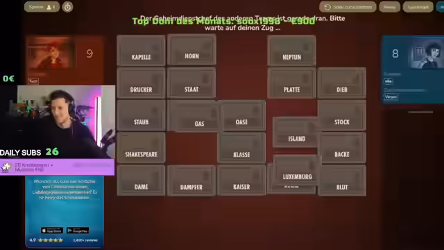 02:30:02Ein wiederkehrendes Element ist ein Ratespiel, bei dem es um das Finden von passenden Wörtern geht. Streamer und Zuschauer rätseln über verschiedene Begriffe wie 'Beschwerd', 'Milo', 'Wasser' und 'Königsgarde', wobei es zu Missverständnissen und humorvollen Umdeutungen kommt. Die assoziativen Gedankengänge sind oft komplex und unvorhersehbar.