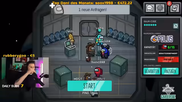 01:25:56Der Streamer spricht über eine grassierende Krankheit und seine Sorge, selbst krank zu werden, da dies seine Arbeit beeinträchtigen würde. Anschließend wechselt der Fokus zu einer Among Us-Runde, bei der die Spieler versuchen, den Code zum Beitreten zu finden und sich über Ingame-Items austauschen. Es wird über die Kosten von Items im Auktionshaus diskutiert und die Spieler bereiten sich auf die nächste Runde vor, indem sie über Taktiken und Rollen sprechen. Die Vorfreude auf das Spiel ist spürbar, während die Spieler ihre Strategien für die kommende Runde planen und sich auf das gemeinsame Erlebnis einstimmen.
