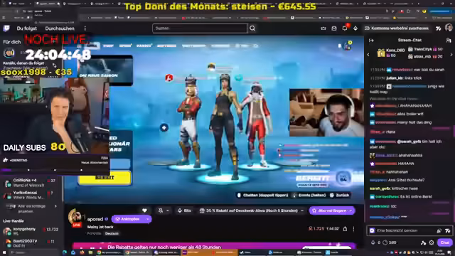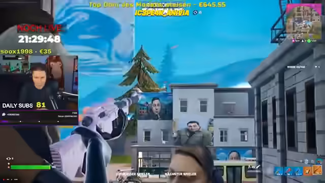 02:13:51Nach der intensiven Diskussion über die Vorfälle am Steuer wechselt der Streamer das Thema und startet eine Gaming-Session in Fortnite. Er und sein Team versuchen, sich in einem Spiel mit taktischer Vorgehensweise durchzusetzen. Es kommt zu vielen hitzigen Momenten, in denen er und seine Mitspieler gezielt gegnerische Spieler ausschalten. Die Atmosphäre ist geprägt von dynamischen Entscheidungen und einer Mischung aus Erfolg und Frust.