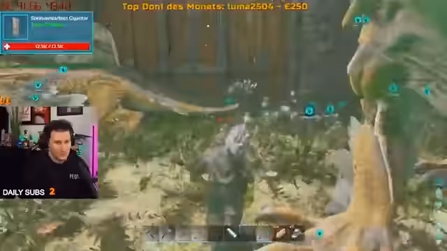 03:21:50Beim ersten Versuch, den frisch gefertigten Rockdrake-Sattel zu nutzen, erleidet der Streamer einen kritischen Fehler. Der Sattel zerfällt sofort und der Dino stirbt durch Angriffe von Monstern. Das Problem lag in der nicht vorhandenen Prägung des Rockdrakes, was ihn im Kampf schwach machte. Dieser Rückschlag verdeutlicht, wie wichtig gut ausgerüstete und geprüfte Dinos für den Fortschritt sind, um die Gefahren des Spieles zu überleben.