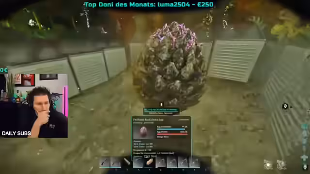 04:15:15Es beginnt eine hektische Mission, ein hochwertiges Rockdrake-Ei (Level 170, weiblich) aus einem hochradioaktiven Gebiet zu bergen. Der Streamer ist dabei massiv unter Zeitdruck, da er einen Termin beim Barbier hat. Es kommt zu mehreren tödlichen Kämpfen mit den umliegenden Dinos, was die Mission extrem gefährlich und knapp scheinen lässt. Der Ärger über den Mangel an Ressourcen in der Basis wird wieder zum zentralen Thema.