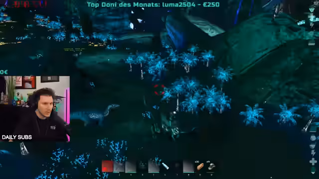 02:32:43Der Streamer startet eine Expedition in ein gefährliches, schlecht beleuchtetes Gebiet des Spiels. Er berichtet von den Herausforderungen, die durch fehlende Lichtquellen entstehen, welche das Spawnen von namenlosen Monstern fördern. Sein Ziel ist es, seltene rote Kristalle zu farmen, wobei er auf technische und spielmechanische Schwierigkeiten stößt, wie z.B. den Verlust von Ausrüstung und den Tod von Dinos. Die Mängel an Ressourcen wie Glühbirnen und die Notwendigkeit, ständig aufzupassen, machen das Vorankommen äußerst mühsam und riskant.