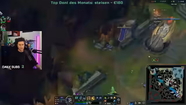 03:18:53Ein League of Legends-Spiel beginnt, das schnell anspruchsvoll wird. Der Streamer spielt als Amumu und konfrontiert sich mit einem sehr starken gegnerischen Top-Laner, der ihn dominiert. Trotzdem behält das Team die Fassung und kämpft sich in das Spiel zurück. Entscheidend sind Aktionen wie der erfolgreiche Erbeutung des Drakes. Teamwork und das Nutzen von Chancen sind der Schlüssel, um dem Rückstand standzuhalten und das Spiel aktiv zu gestalten.