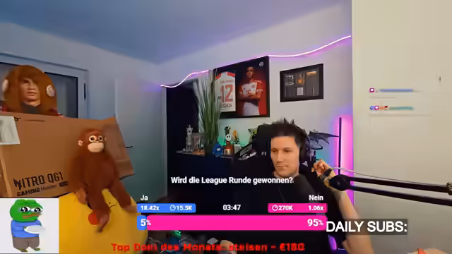 Nach einem intensiven League of Legends-Spiel, das durch hohe Einsätze und persönliche Rivalitäten geprägt war, stand das Hauptereignis des Abends an: ein Song-Battle-Turnier. Hier traten verschiedene Künstler gegeneinander an, während der Streamer nebenbei seine sportlichen Sympathien teilt und von einem skurrilen Vorfall bei einem anderen Streamer berichtet.