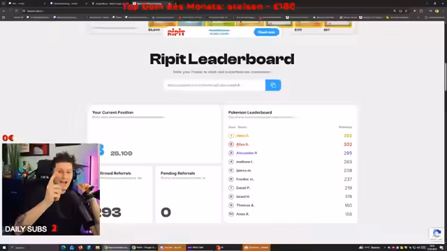 00:33:52Der Streamer kündigt für 20 Uhr ein Song Battle an und erwähnt, dass letzte Woche kein Stream stattfand. Kurz darauf spricht er von einer Gewinnspiel-Kooperation mit einem Unternehmen namens Ripit, bei dem er derzeit auf Platz 3 steht und realistische Chancen auf einen Gewinn von 44.000 Dollar hätte. Allerdings wird die Teilnahme auf US-Bürger beschränkt, was ihm weitere Gewinnchancen verwehrt und ihn frustriert.