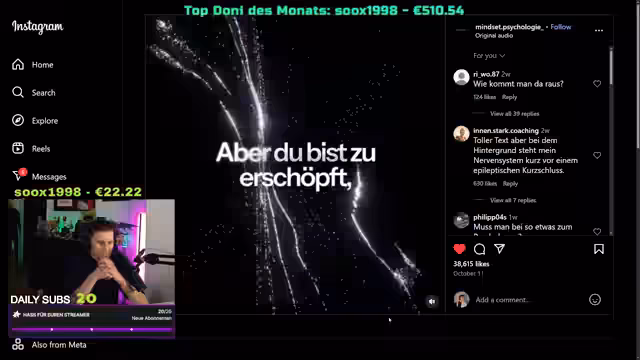 03:34:07Es wird bekannt gegeben, dass eine geplante Partnerschaft mit 'Alternate' nicht zustande gekommen ist, da er sich zu spät gemeldet hatte. Stattdessen wird es ein Placement mit 'O-Strom' geben, einer Vergleichsseite für Stromanbieter. Er betont, dass die Community nicht verpflichtet ist, dort etwas zu kaufen, und dass es sich um eine normale Werbung handelt, die er als unbedenklich einstuft. Er reflektiert über die monetäre Bewertung von Streamern, die sich oft nur auf Zuschauerzahlen konzentriert und nicht auf die Qualität des Supports. Er äußert sich auch zu den psychischen Belastungen des Streamings, da er als Entertainer ständig präsent sein muss und es ihm an einem Ausgleich zum Privatleben mangelt. Er vergleicht seine Situation mit einem 'Überlebensprogramm', bei dem Veränderung als Gefahr wahrgenommen wird, obwohl sie notwendig wäre.