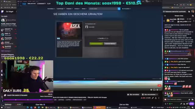 00:22:55Der Streamer empfiehlt seinen Zuschauern dringend die Dokumentation über Haftbefehl auf Netflix. Er betont, dass er selbst kein Fan des Rappers war und mit null Erwartungen an die Doku herangegangen ist. Die anderthalbstündige Dokumentation habe ihn jedoch zutiefst gefesselt und sei die ehrlichste und krasseste Doku, die er je gesehen habe. Er hebt hervor, wie die Doku die Auswirkungen von Drogen auf einen Menschen zeigt und zur Selbstreflexion anregt. Er ermutigt alle, sich die Doku anzuschauen, insbesondere da er am Freitag, Samstag und Sonntag nur eingeschränkt streamen kann, was den Zuschauern genügend Zeit gibt, sie anzusehen. Er ist gespannt auf die Meinungen seiner Community dazu.