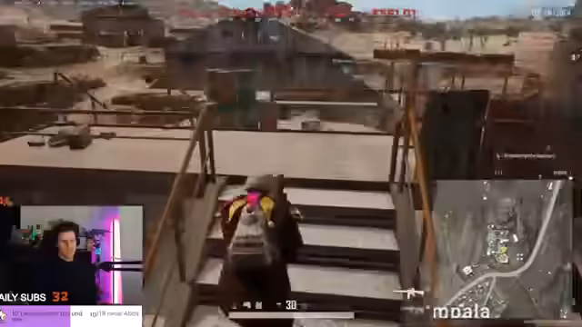 04:02:50Das Team hat einen exzellenten, zentralen Standort in der Gefahrenzone bezogen und plant, defensiv zu bleiben, um die Runde zu gewinnen. Die Situation wird jedoch durch einen feindlichen Spieler gefährdet, der aus einem Flugzeug heraus mit einem Maschinengewehr angreift. Es kommt zu einem Absturz, was die Taktik zunichtemacht. Das Team wird in ein heftiges Gefecht verwickelt, das es verliert, sehr knapp vor dem möglichen Sieg, was der Streamer als 'schade' und 'unglücklich' bewertet.