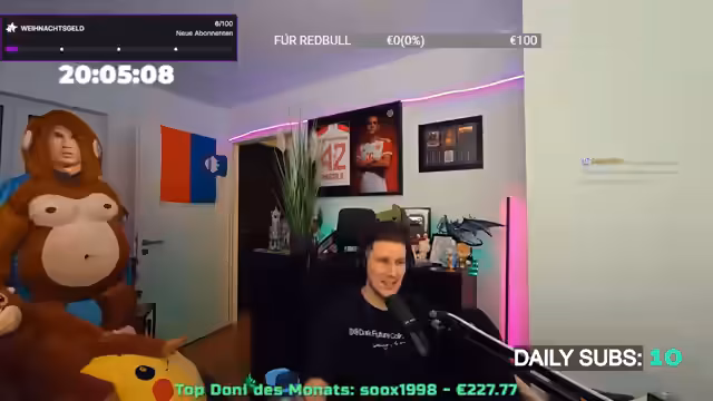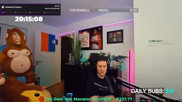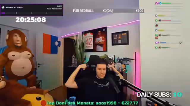 20:37:21Am Ende des Streams bedankt sich der Streamer explizit bei O-Strom als Partner des Monats und würdigt die Zusammenarbeit. Er erwähnt, dass die Partnerschaft ihm persönlich geholfen habe, positive Aspekte hervorzuheben, und dankt der Community für die Unterstützung durch Subs, Resubs und Donations. Trotz technischer Probleme mit einem geplanten Raid auf Sony wird ein stattdessen durchgeführter Raid auf Steffo erwähnt. Der Streamer wünscht den Zuschauern einen entspannten Wochenstart, gesunde Weihnachtsfeiertage und verabschiedet sich mit einem letzten Dank für die Teilnahme am 12-stündigen Event. Die O-Strom-Partnerschaft bleibt dabei eine der zentralen Ankündigungen des Tages.