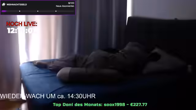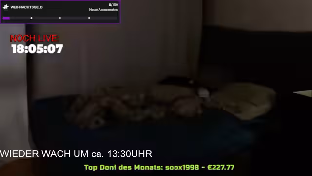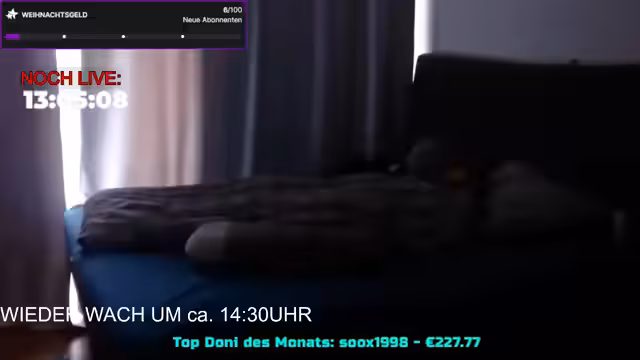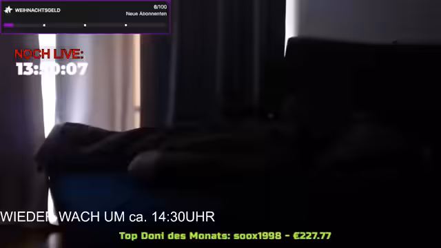 12:08:00Der Streamer startet nach einer kurzen Verspätung und begrüßt das Publikum. Es wird über den Schlafrythmus diskutiert und technische Probleme mit der Webcam erwähnt, die "leckert". Private Discord-Server sind unbesetzt. Der Streamer entschuldigt sich für den Frust des Vortages und betont, dass negative Aspekte weniger Raum einnehmen sollen. Es folgen Begrüßungen für Zuschauer wie Anna Maria und Wallonpanda. Die Planung für eine Gaming-Session wird diskutiert, wobei Spiele wie R-Graders oder TFT vorgeschlagen werden. Probleme mit der Internetverbindung (Telekom/Vodafone) werden thematisiert.