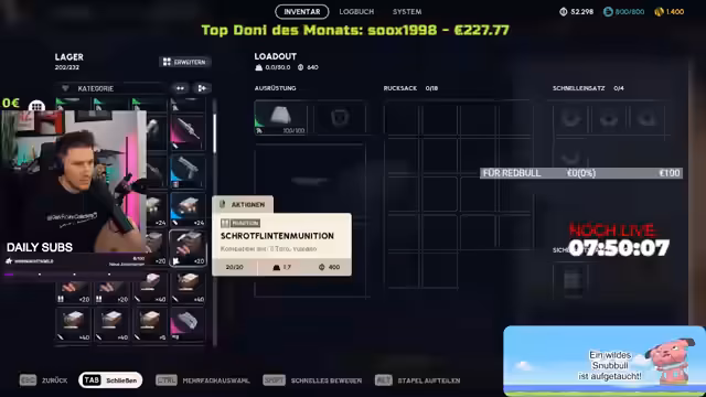 01:52:23Nach 8 Stunden Streaming diskutiert der Streamer die Konsequenzen seiner langen Online-Zeit. Er erwähnt, dass er nur 7 Stunden schlafen wird und sich morgen ausgelaugt fühlt. Dabei reflektiert er, wie das Streaming sein Leben beeinflusst: Einerseits hilft es ihm durch Ablenkung von eigenen Problemen, andererseits führt es zu Selbstzweifeln. Er erklärt, dass er durch Gespräche mit Zuschauern oft eigene Erkenntnisse gewinnt und Schwierigkeiten besser verarbeiten kann, obwohl er selbst sich oft hart kritisiert.